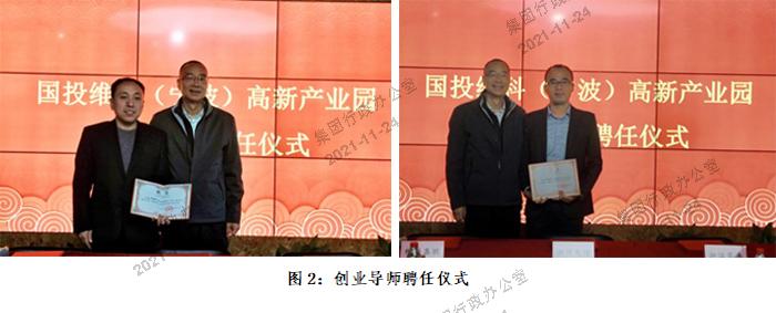 首先舉行了國投維科(寧波)高新產(chǎn)業(yè)園創(chuàng)業(yè)導師聘任儀式,由維科云羿項目總經(jīng)理胡軍為兩位創(chuàng)業(yè)導師頒發(fā)聘書。