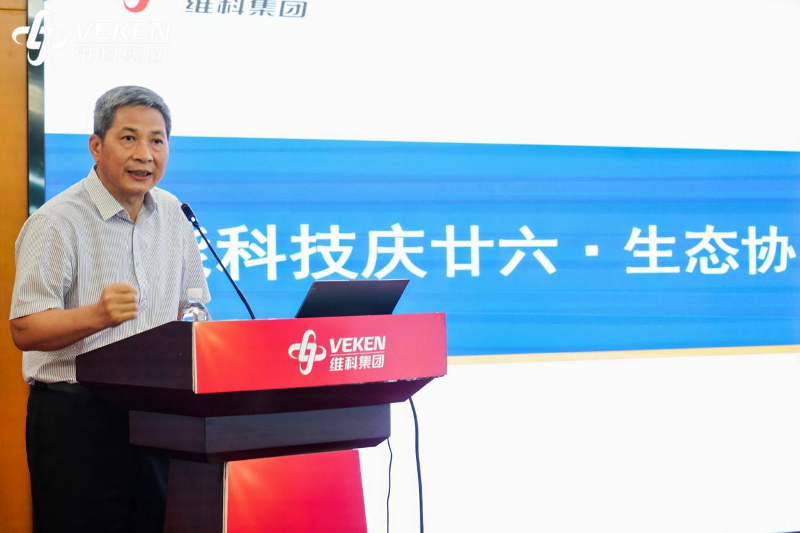會議最后何董作《綠能科技慶廿六·生態(tài)協(xié)同向未來》主題宣講。何董回顧了集團(tuán)科技創(chuàng)新的發(fā)展歷史,從最初的纖維科技創(chuàng)新,到新能源、高端絲網(wǎng)技術(shù)合作,再到高新貨柜數(shù)字化平臺的打造、管理國家級基金,最終疊加形成綠色能源科技成果轉(zhuǎn)化,不斷完善構(gòu)建生態(tài)合力,每一步都體現(xiàn)了維科對科技的執(zhí)著追求,并將繼續(xù)秉承這份科技初心,不斷創(chuàng)新,追求卓越。