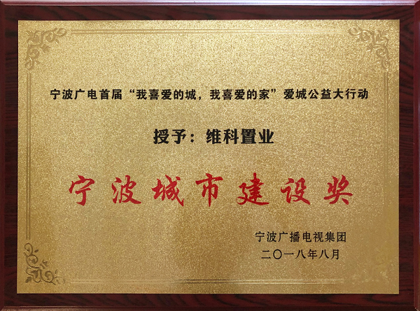2018年8月16日,由寧波廣播電視集團(tuán)主辦的“愛(ài)城公益盛典”在寧波大劇院隆重舉行。作為寧波新時(shí)代的建設(shè)者,寧波維科置業(yè)在頒獎(jiǎng)盛典中,被授予“寧波城市建設(shè)獎(jiǎng)”。