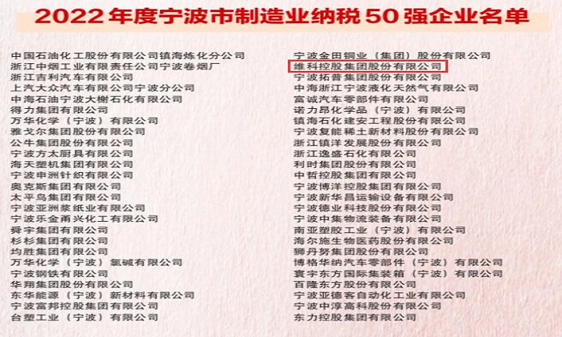 7月14日午前、「寧波経済アカデミー」と呼ばれる2022寧波革新創(chuàng)業(yè)風(fēng)雲(yún)ランキングが再び幕を開け、維科グループは再び納稅ランキングに輝き、2022年度寧波市製造業(yè)納稅50強(qiáng)を獲得した。
