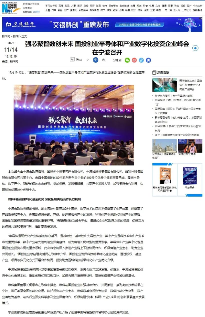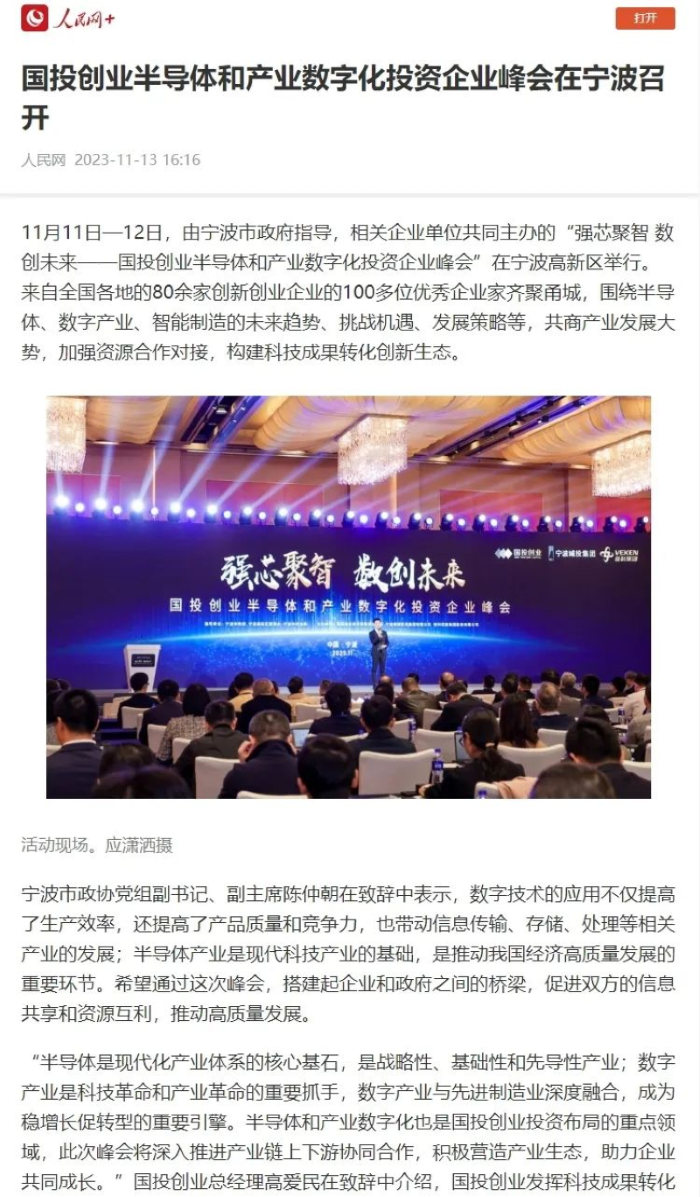 強(qiáng)芯聚智 數(shù)創(chuàng)未來(lái)!國(guó)投創(chuàng)業(yè)半導(dǎo)體和產(chǎn)業(yè)數(shù)字化投資企業(yè)峰會(huì)召開——獲多家主流媒體宣傳報(bào)道