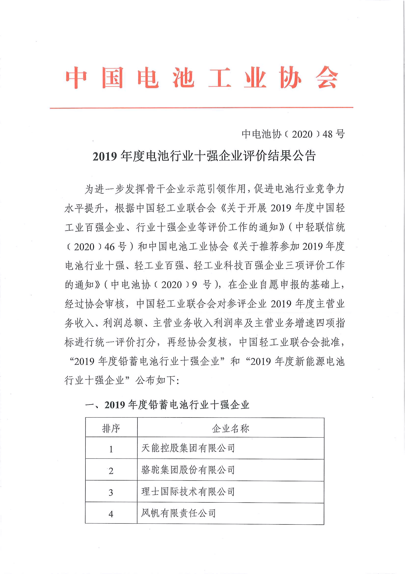 2020年7月31日、中國(guó)電池工業(yè)協(xié)會(huì)は「2019年度電池業(yè)界トップ10企業(yè)評(píng)価結(jié)果公告」を発表し、維科技術(shù)は再び新エネルギー電池業(yè)界トップ10企業(yè)にランクされた。